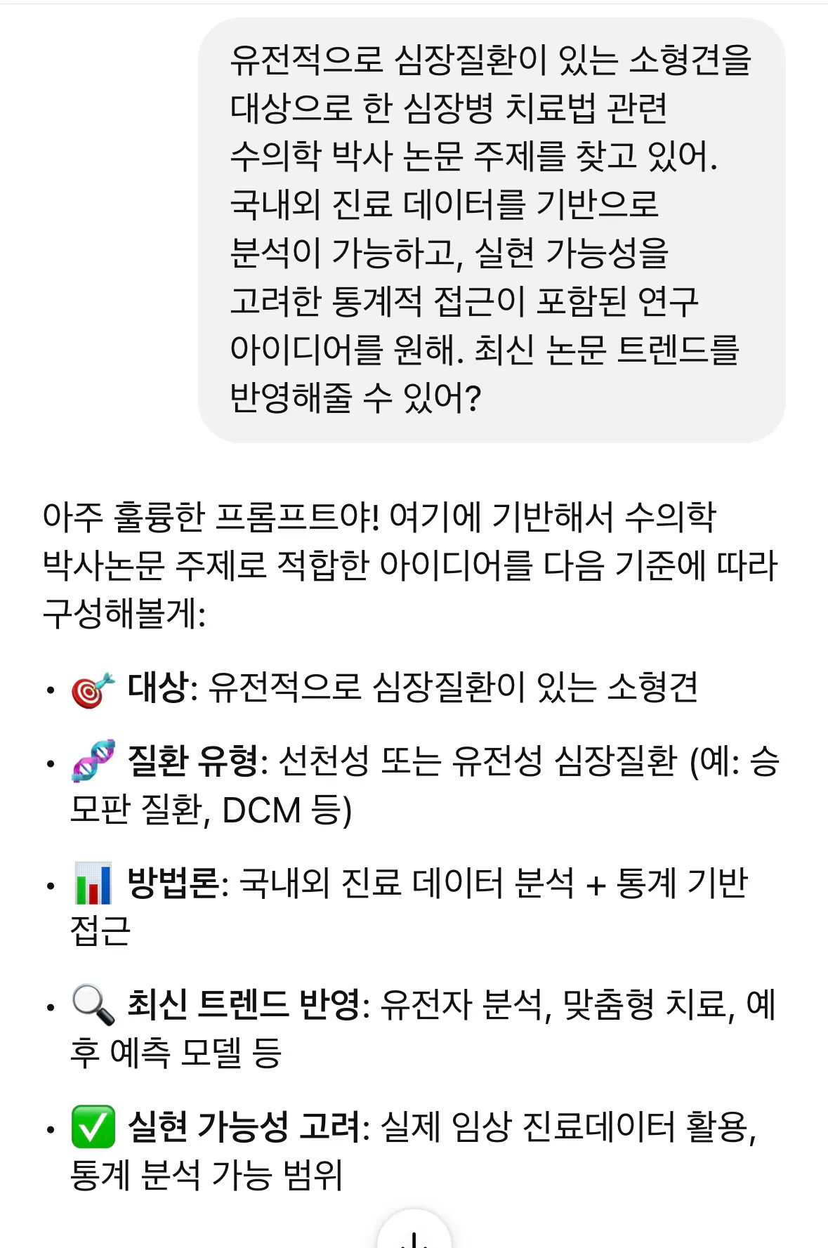 • 시행착오: 주제 자체가 임상적으로 복잡하고 데이터 확보가 어려운 부분이라, 아무리 AI가 도와줘도 현실적인 적용 가능성은 따로 고민이 필요했습니다.