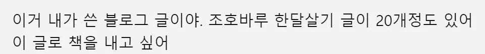 1. 블로그 글을 챗GPT에 업로드 후 책을 쓰고 싶다고 했더니 책 출판을 위한 단계와, 목차 초안을 제시해주고 추가적인 질문을 주어 저의 생각(글감)을 확대하게 해줬습니다.
