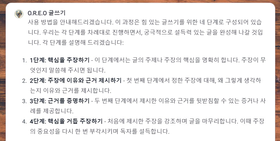 O.R.E.O 명확하고 논리적인 글쓰기 방법입니다