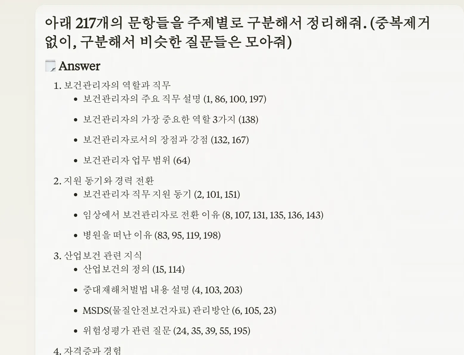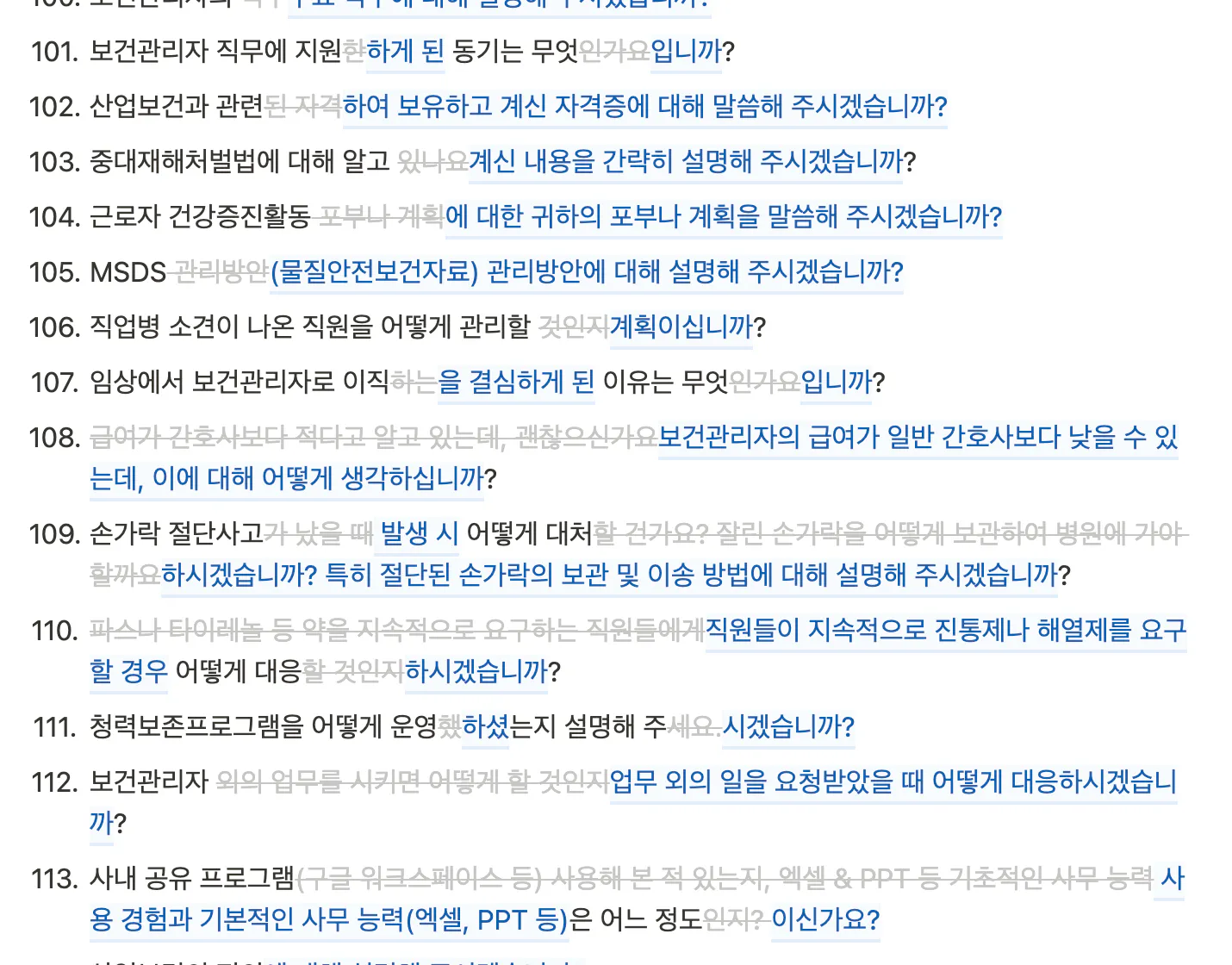 노션의 경우엔 이미 자료가 노션으로 있어서 직관적으로 수정을 할 수 있었는데요. 양이 많다보니 편집을 하다가 버벅거려 꺼지는 경우가 있고, 진짜 중복제거로 한게 맞나? 싶어서 챗지피티와 클로드로도 함께 면접질문들을 정리해 보았습니다.