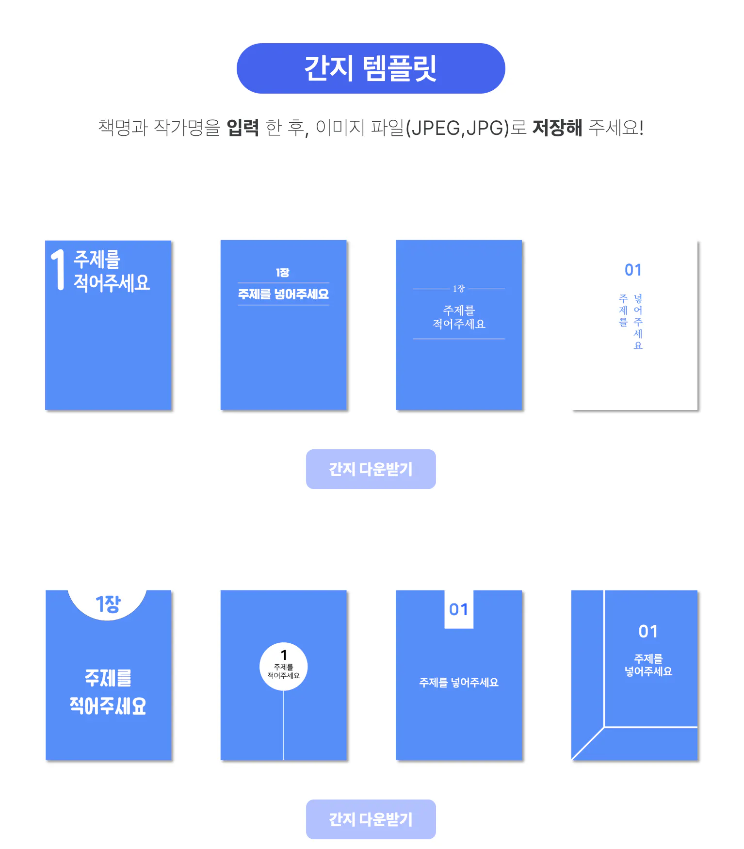 기본적인 책표지이지만, 저는 이전에 활용한 canva가 저에겐 더 맞는것 같아 canva로 최종 만들기로 했어요.