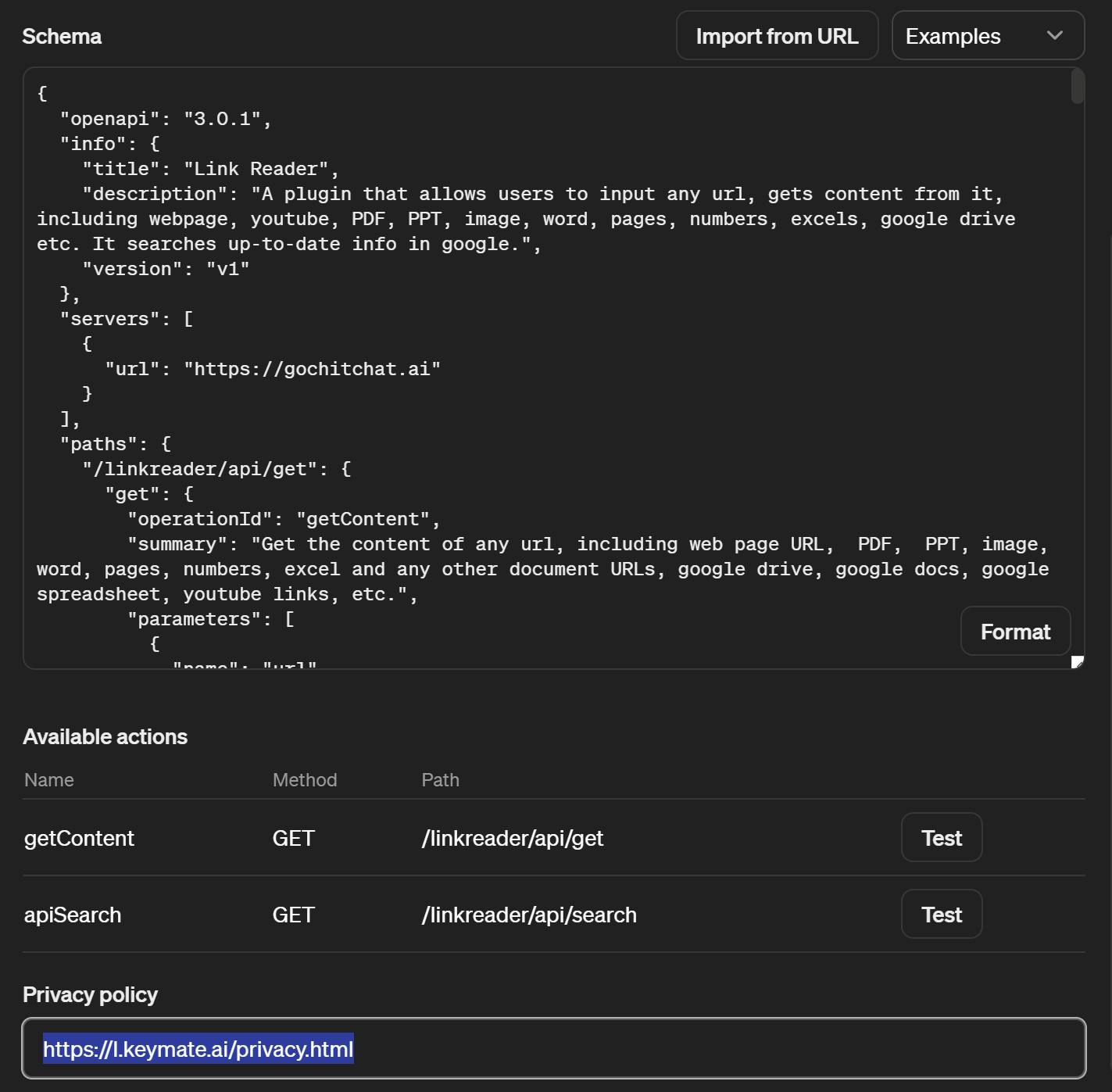• Privacy Policy 에는 “https://l.keymate.ai/privacy.html”을 입력합니다. 검색엔진에서 “Link reader privacy policy”로 검색하여 나오는 결과를 입력할 수도 있습니다.