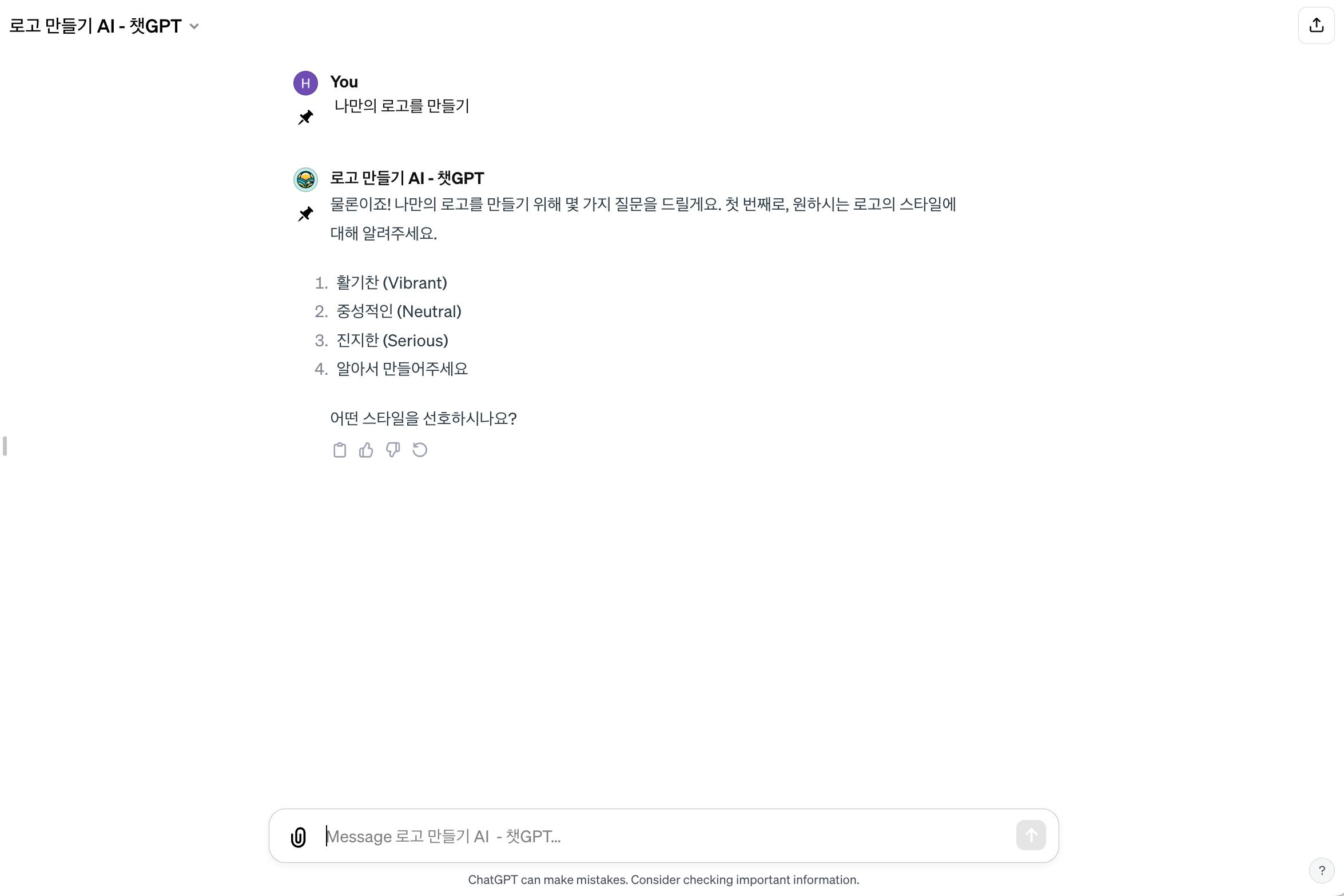 그럼 로고 만들기 AI GPTs를 활용하여 로고를 만드는 방법을 살펴보겠습니다.