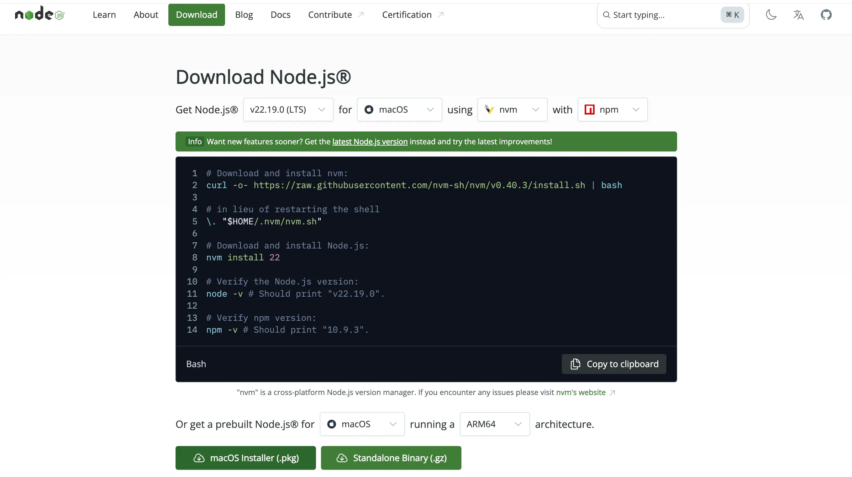 • Clode Code를 설치하기 위해 Node.js를 먼저 설치