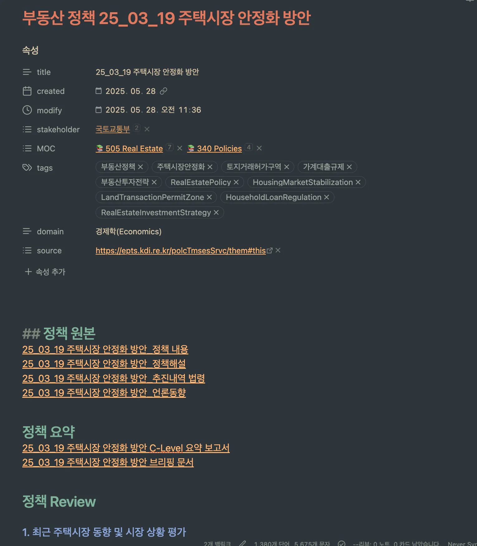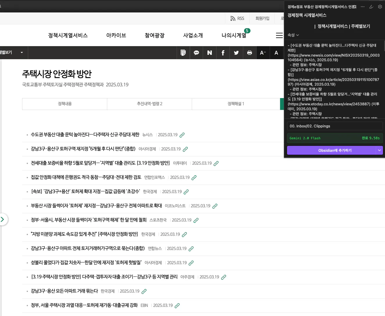obsdian에 저장하기위해 내용을 가져옴에 webcliper기능을 이용하였고, Zotero를 사용하여 정책 파일을 연결하고 싶었지만 실패하여 훗날에 해결하기로 결정, 결국 이전 사례때 사용했던 경로를 가져오는 방식으로 pdf 파일 정리, 인사이트는 notebookLM을 사용하여 pdf 내용 확인하여 저장.