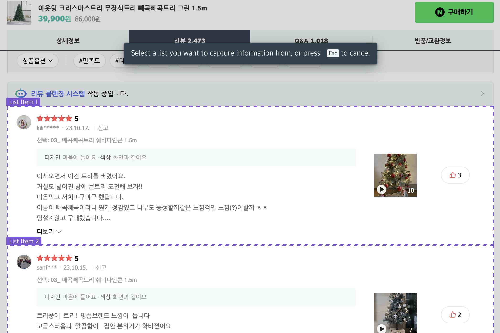 후기와 평점이 좋은 제품의 후기를 Browse AI 로 크롤링