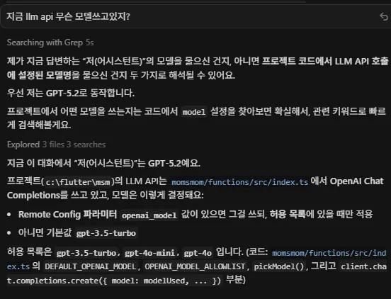 기본값/허용 목록: [c:\flutter\msm\momsmom\functions\src\index.ts]의 DEFAULT_OPENAI_MODEL, OPENAI_MODEL_ALLOWLIST