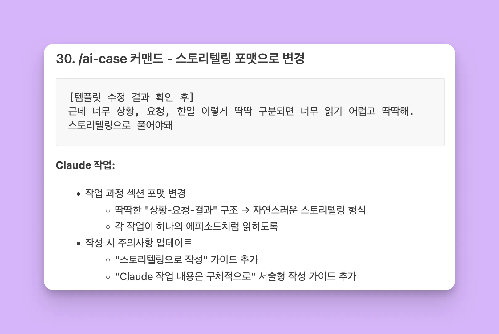 ์ฒ˜์Œ ๋งŒ๋“  ai-case ํ…œํ”Œ๋ฆฟ์ด "์ƒํ™ฉ - ์š”์ฒญ - ๊ฒฐ๊ณผ" ๊ตฌ์กฐ๋กœ ๋„ˆ๋ฌด ๋”ฑ๋”ฑํ–ˆ์–ด์š”.