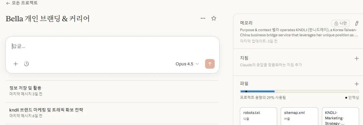 개인적으로 추천은 클로드 프로젝트 기능을 활용해 기존 가지고 있는 데이타를 프로젝파일로 업로드 하고 다양한 업무 자동화, 프로젝트 자동화 더 쉽게 빠르게 설정하고 실행할 수있습니다