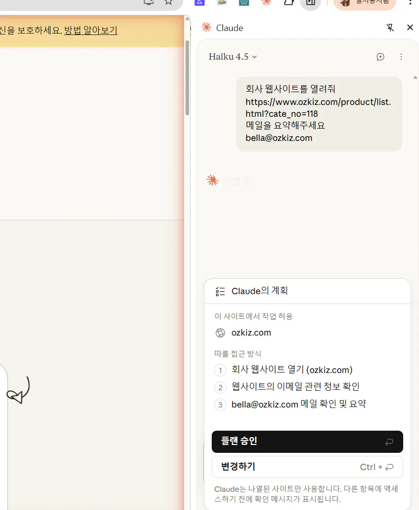 그리고 클로드 브라우저는 사이트 방문하고 고객 문의 대신 답장해주고 발송하는 것도 활용 가능합니다.