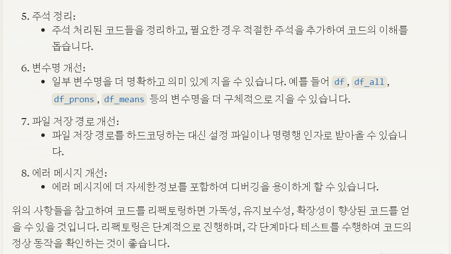 몇 가지 포인트를 짚어주네요. 괜찮은 것도 있고, 빗나간 것도 있습니다. 이봐요. Claude씨, 주석 정리 정도는 누구나 눈 감고도 할 수 있다구요. 유사한 코드가 있다고 다 똑같이 해 버리면 어떻게 하나요!! 엄연히 다른 로직인데…