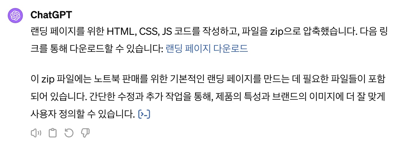 저는 챗GPT에게 “노트북 판매 랜딩 페이지”를 만들어 달라고 부탁했습니다.