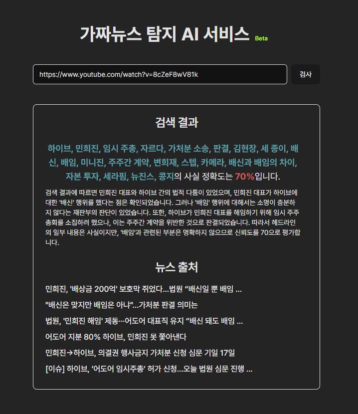 그래서 수많은 가짜뉴스가 가장 많이 쉽게 퍼져나가는 유튜브를 주 타겟으로 선정했습니다.