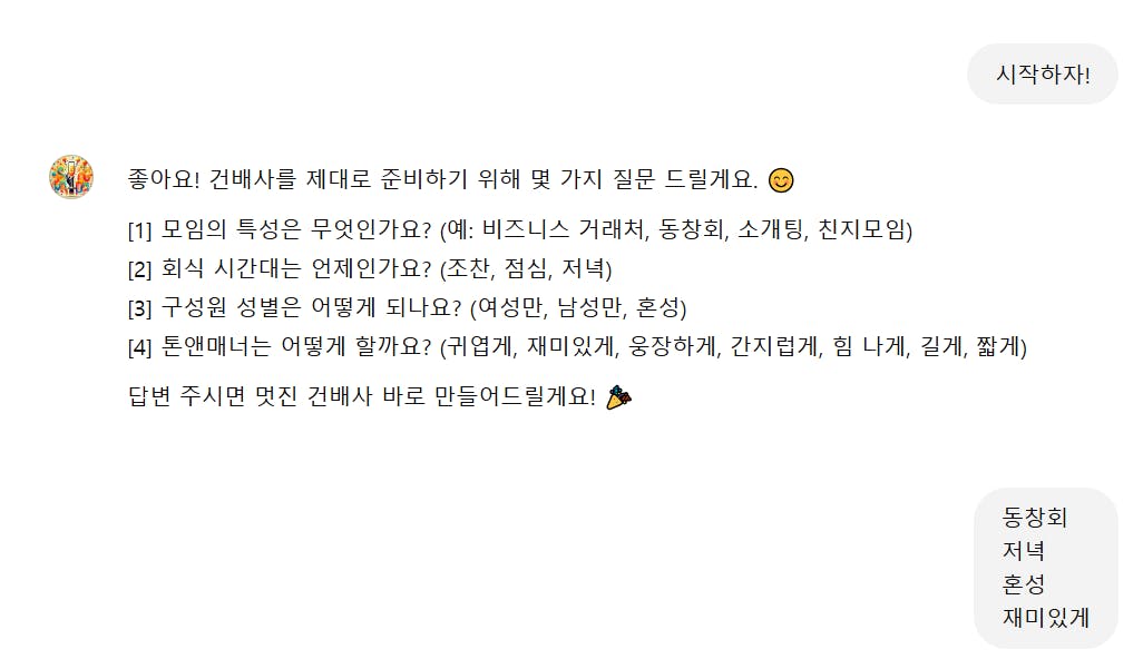 건배사를 (GPT 스토어)에 올려 보았습니다.
