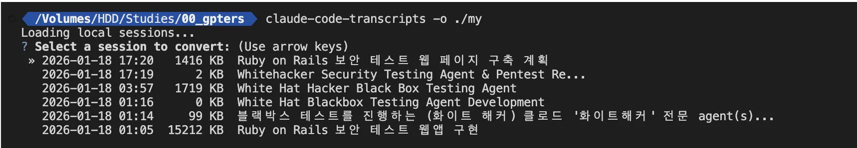 > claude-code-transcripts -o ./{대상디렉토리}