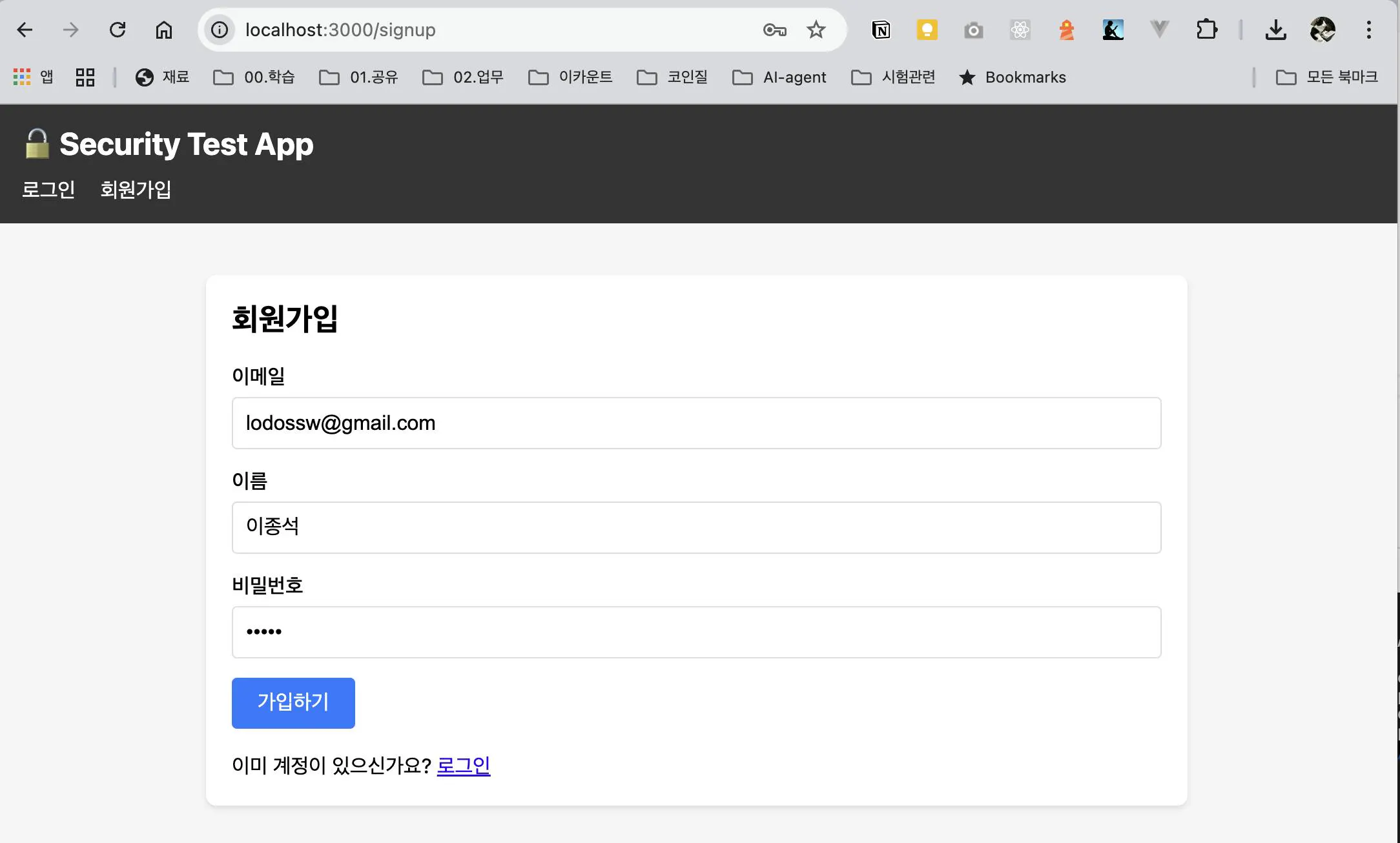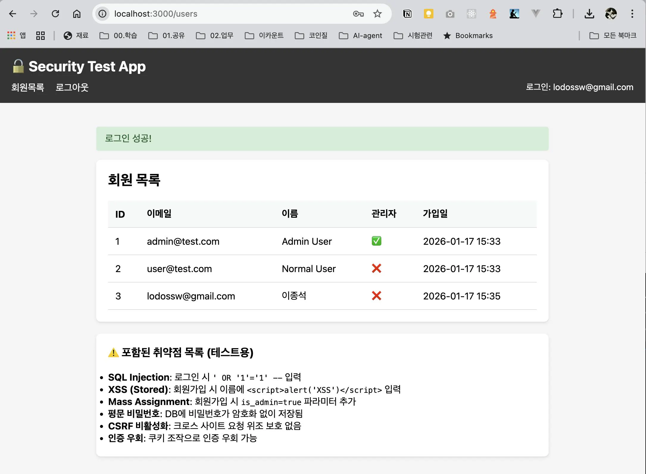 뽀로리 : 테스트를 위해 취약점을 내포한 방식으로 진행해줘.