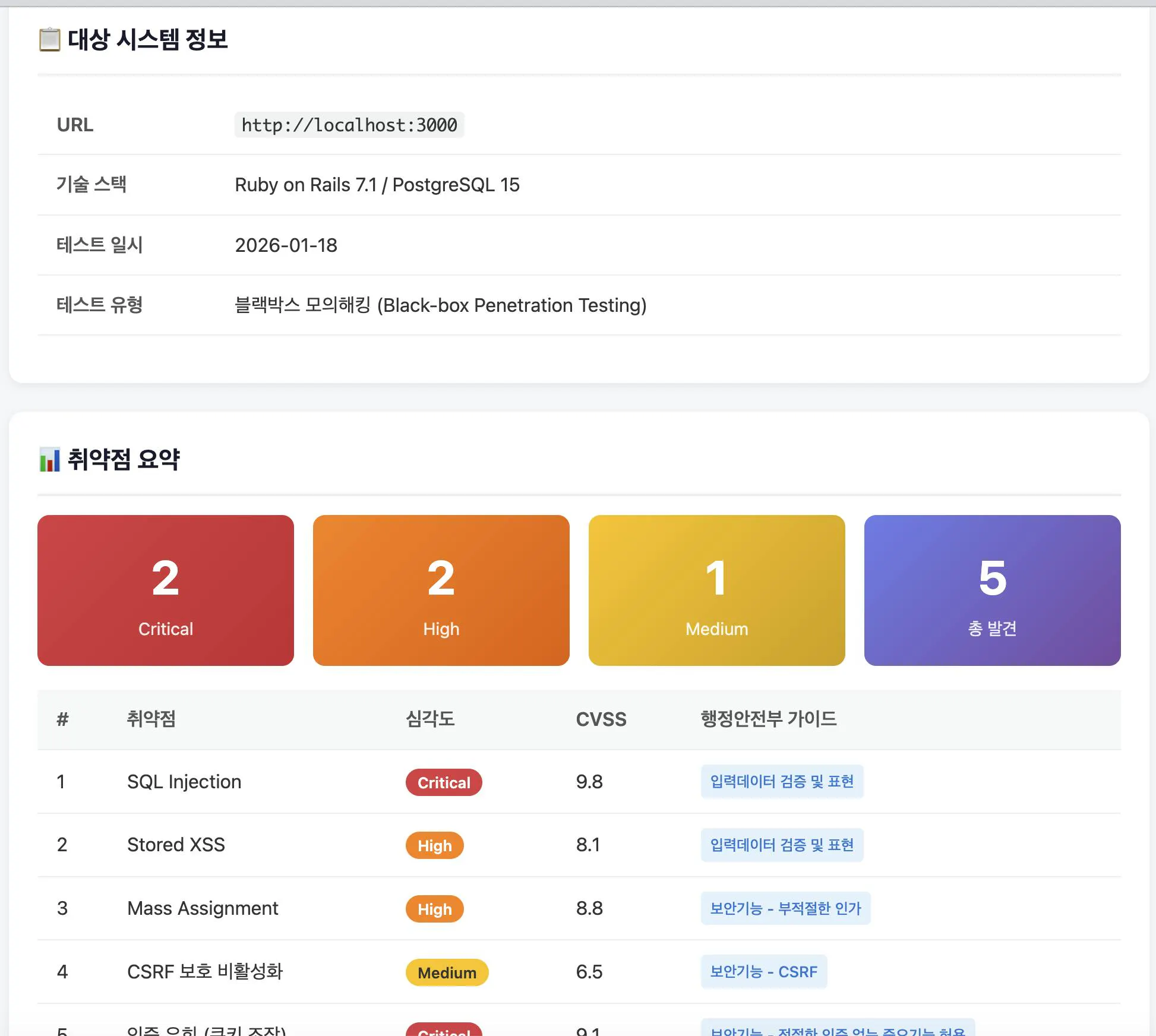 Claude : 보안 점검용 테스트 웹 페이지 계획을 정리하겠습니다.