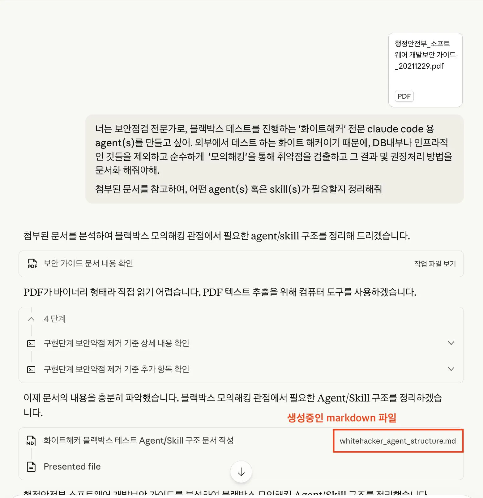 2) 섹션2 : 보안 취약점을 점검할 Claude 의 Agents 구현 및 사용 [전체 대화내역 확인]
