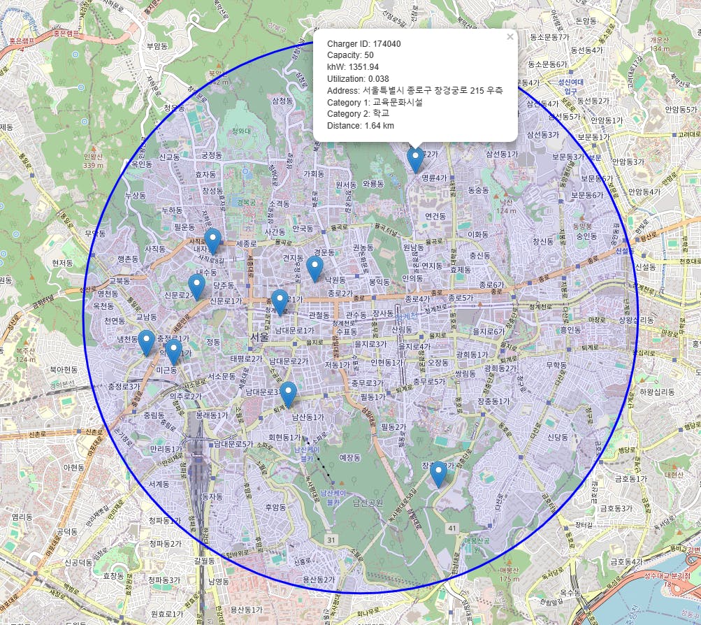 목적 : 저는 전기차 충전회사에서 전략팀에 근무중입니다. 아시는 것처럼 전기차 충전은 인프라 사업이다보니, 좋은 상면에 N/W 확장이 핵심인데 이를 파악하기 위한 기초적인 툴을 개발하고자 했습니다