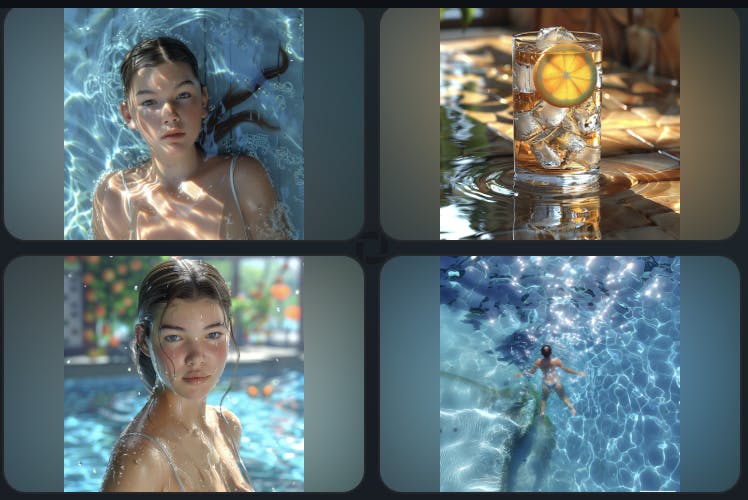 - 명확한 디테일 제공: ‘full-body shot’, ‘vibrant bikini’, ‘sipping a highball’ 등 구체적인 단어를 활용해 원하는 장면을 상세히 묘사했습니다.