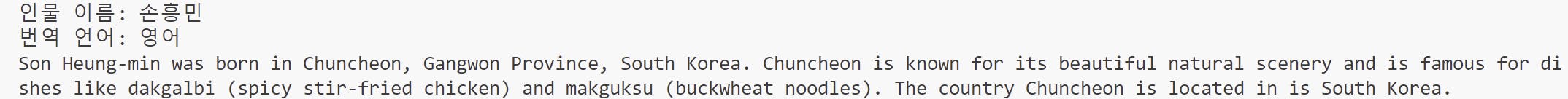 print(result)4o 모델을 사용해서 춘천이 닭갈비와 막국수로 유명하다는 부가 정보까지 알려줍니다.