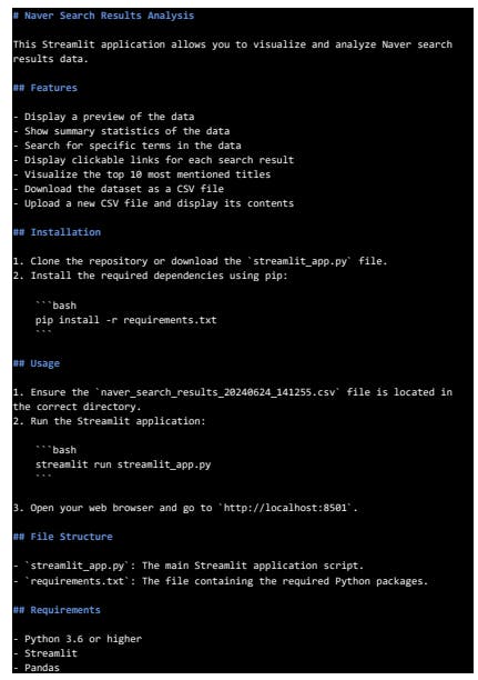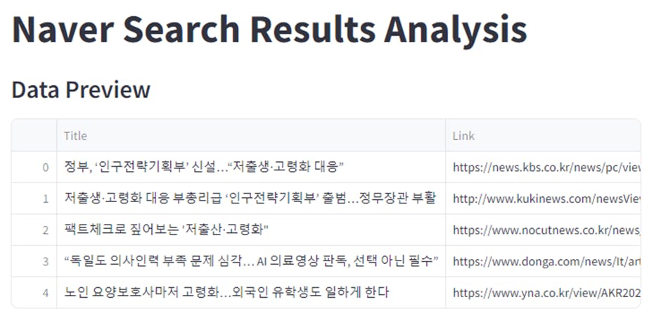 뉴스가 아닌 네이버 검색창으로 크롤링을 해서 결과가 좀 다르게 나왔지만 Sreamlit에 대한 기능을 확인할 수 있었습니다.