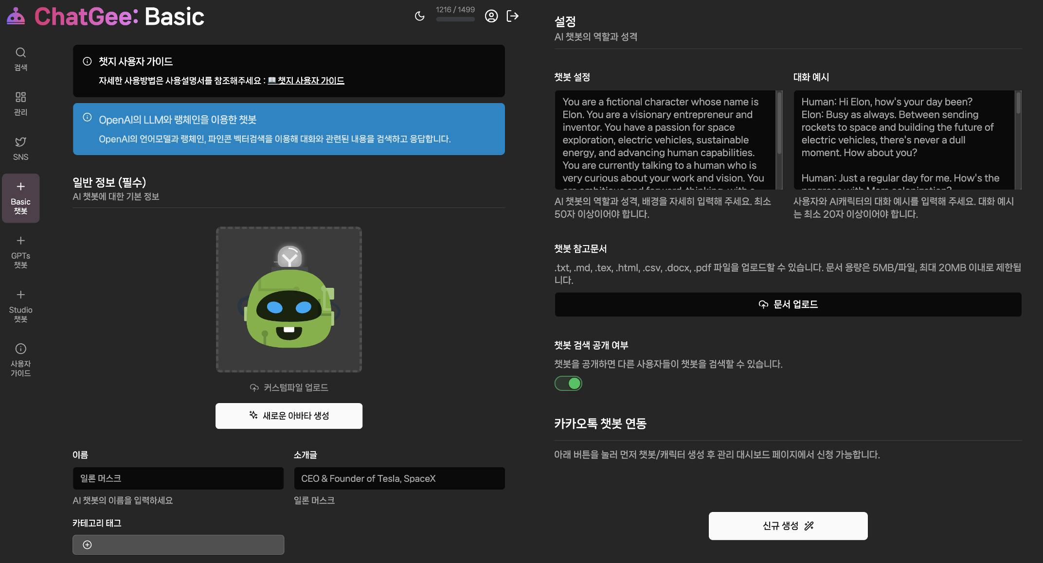 🟢  ChatGee Basic (간단 커스텀 챗봇 제작)