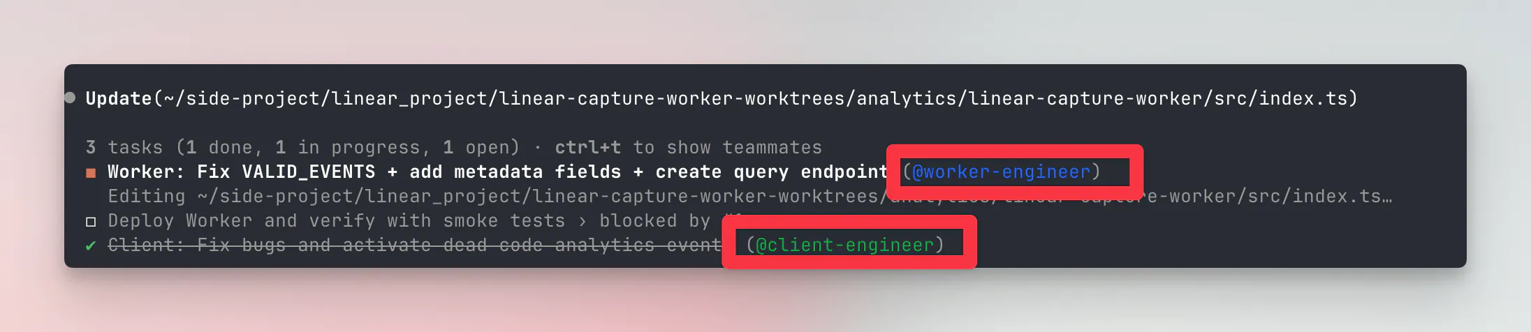 이렇게 하면 team-lead가 태스크를 정확하게 나누고, 각 에이전트가 자기 담당 파일만 건드립니다.