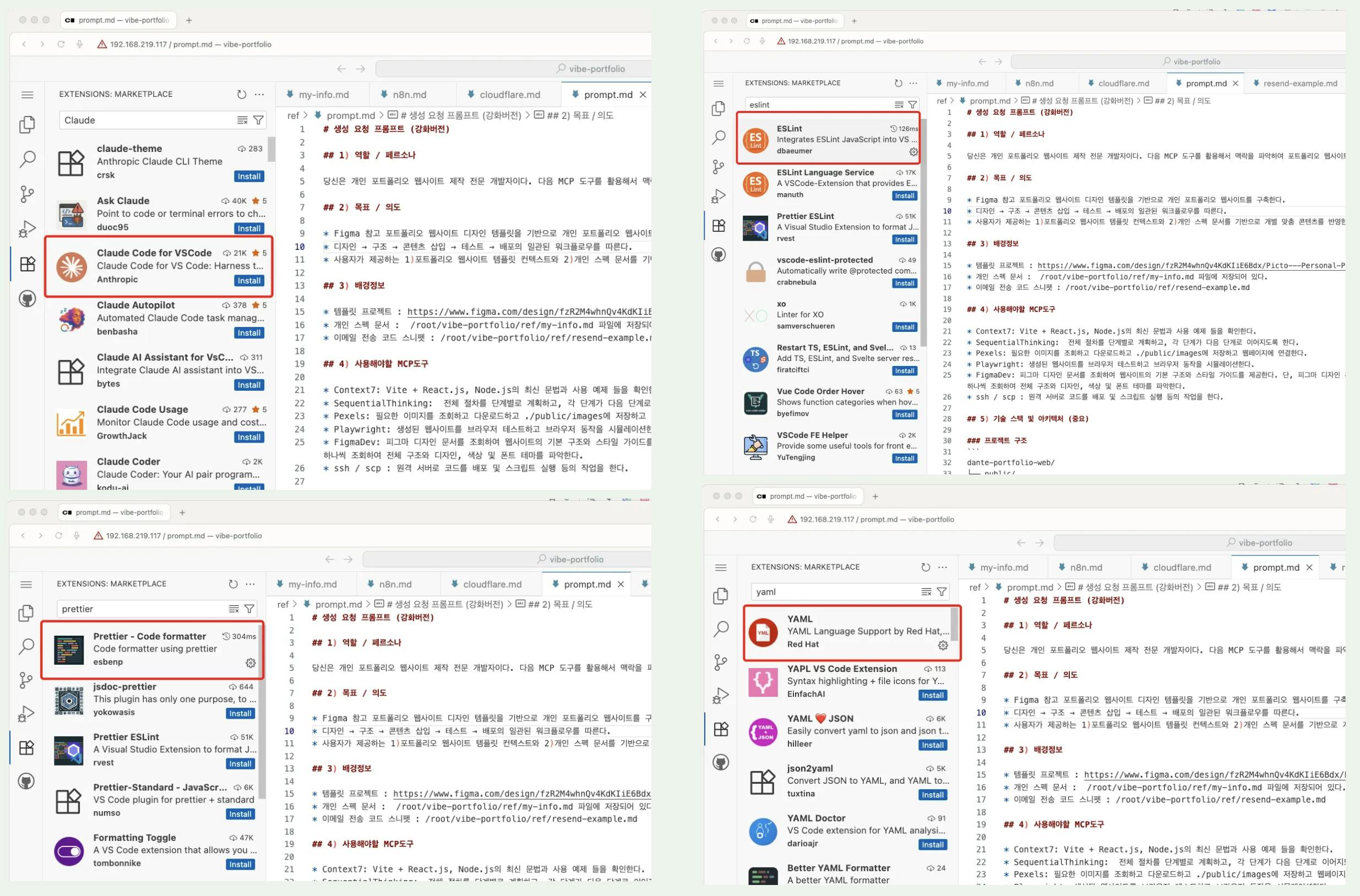 Claude Code for VSCode, ESLint, Yaml, Prettier*