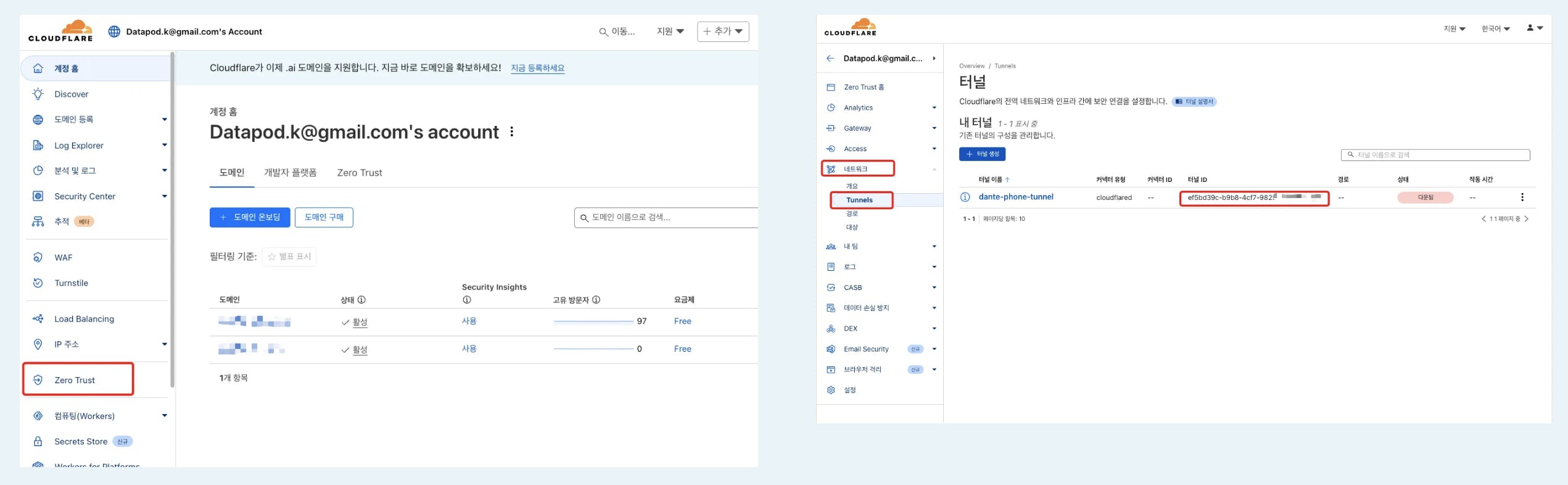 cloudflared tunnel create dante-phone-tunnel# 터널이름 변경하세요cloudflare 터널 설정