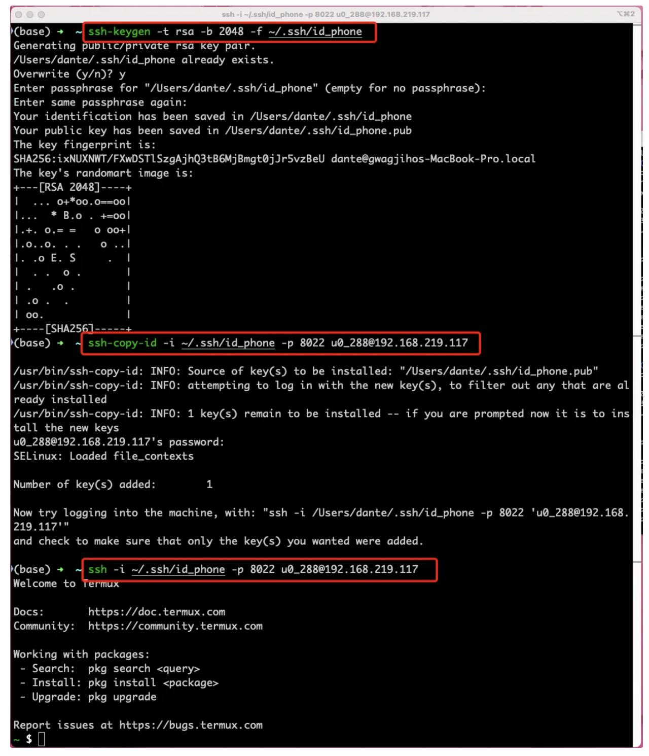 ssh-copy-id -i ~/.ssh/id_phone.pub -p 8022 [사용자ID]@[프라이빗네트워크주소]