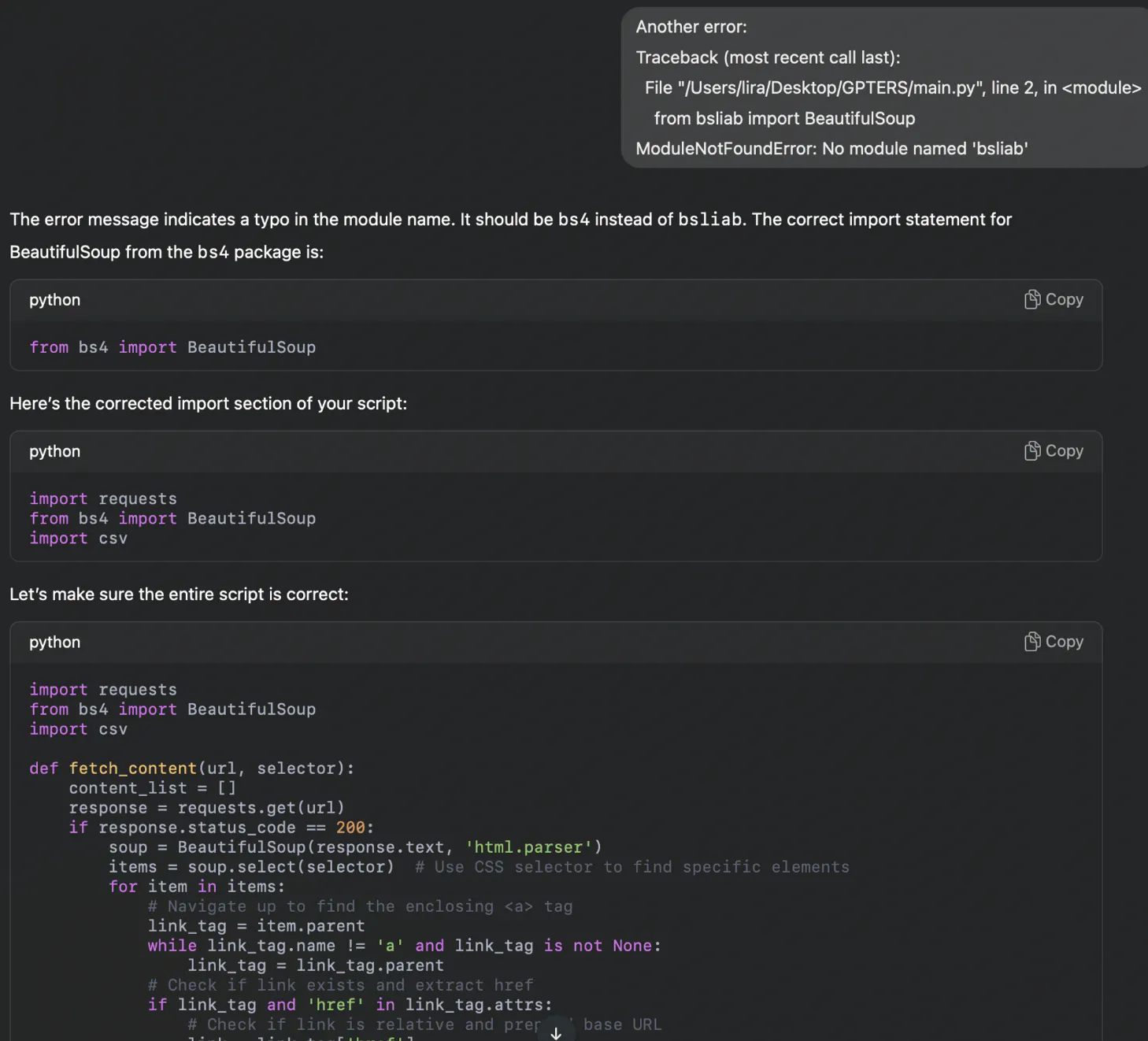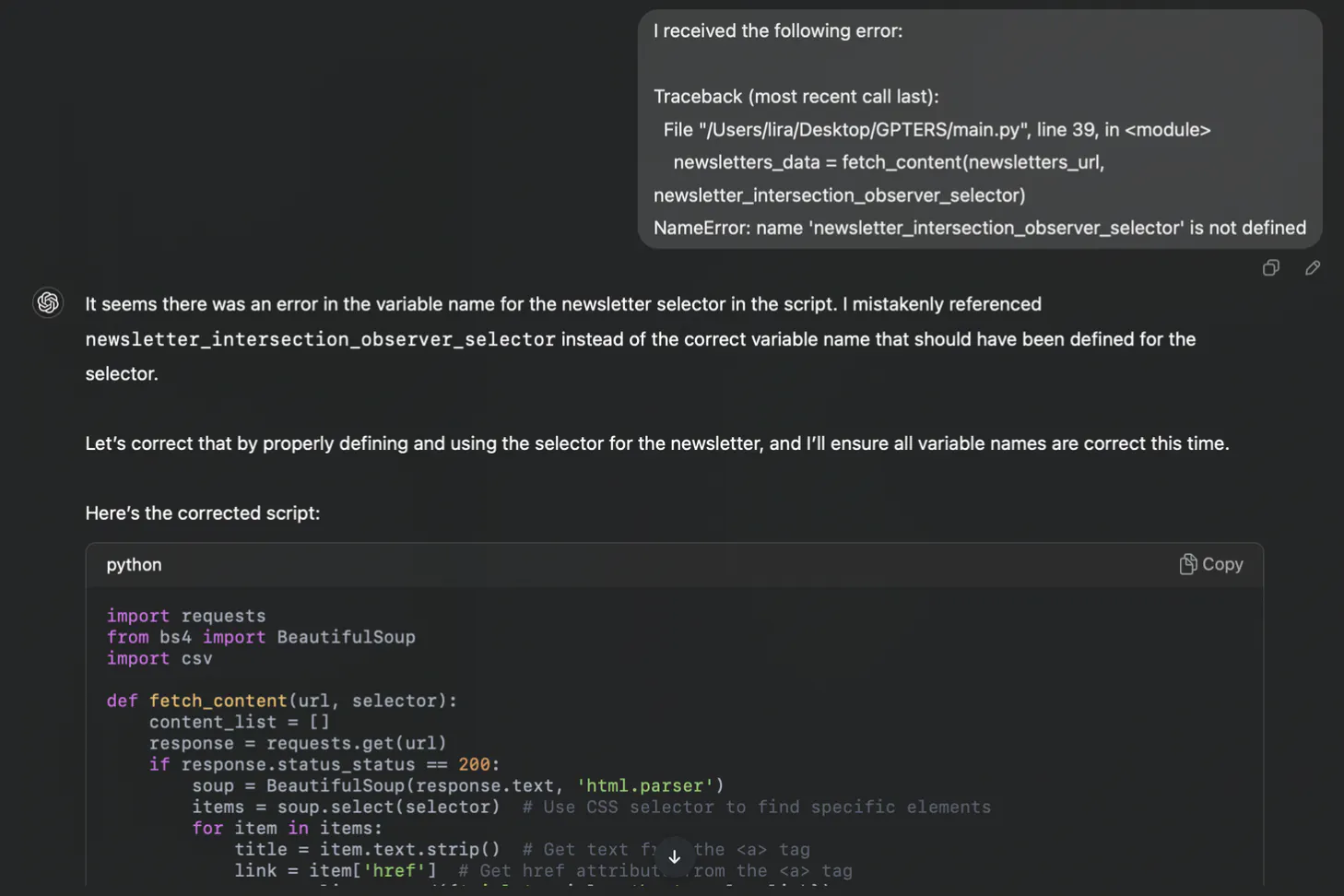 처음부터 혼자 코드를 짜는게 아니고 GPT가 짠 코드를 바탕으로 같이 에러를 해결하다보니 진행도 빨랐고, 간단한 크롤링이었지만 해낼 수 있었다는게 정말 뿌듯했던 과제였습니다!! 😆