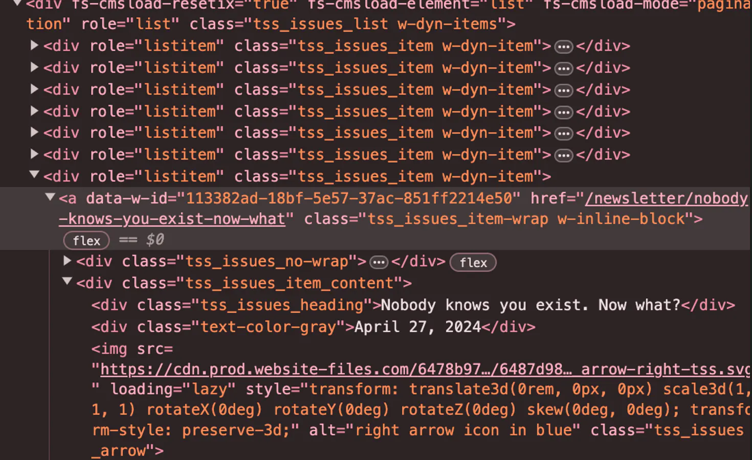 → 문제는 아티클 타이틀 관련 Selector 값을 잘못 복사해온 것