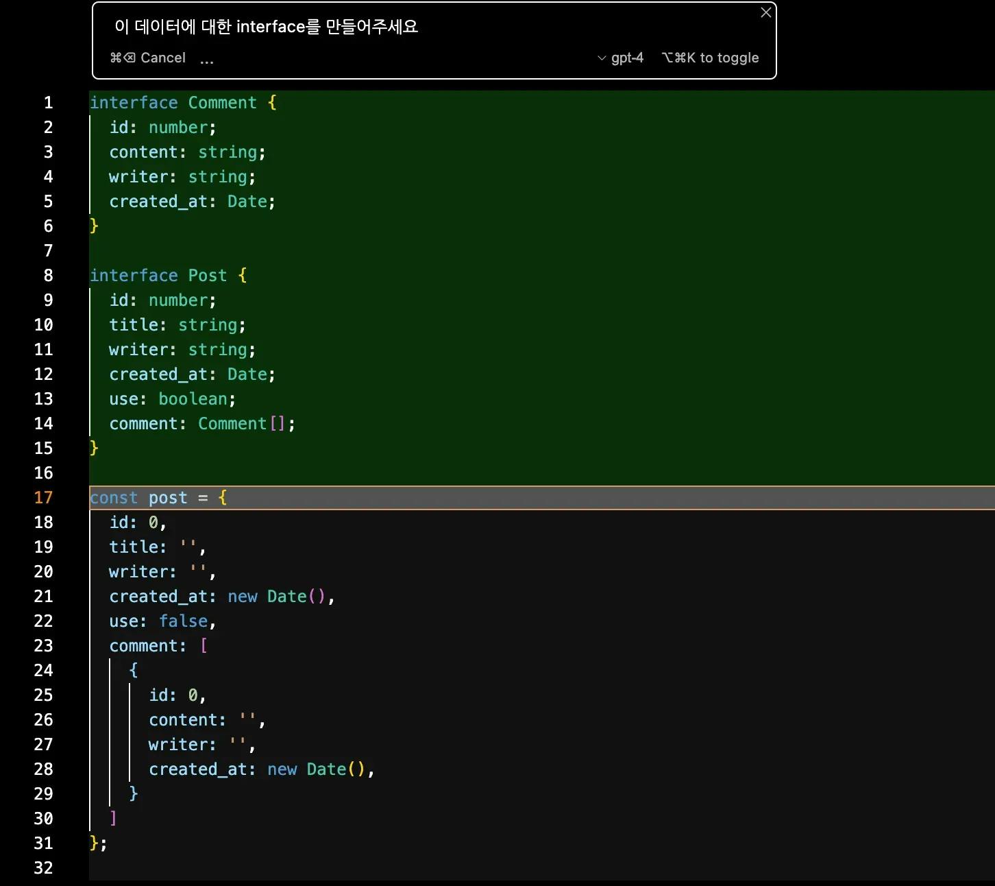 코드 작성하다가 에디터 상에서 자연어로 명령을 내리는 기능
