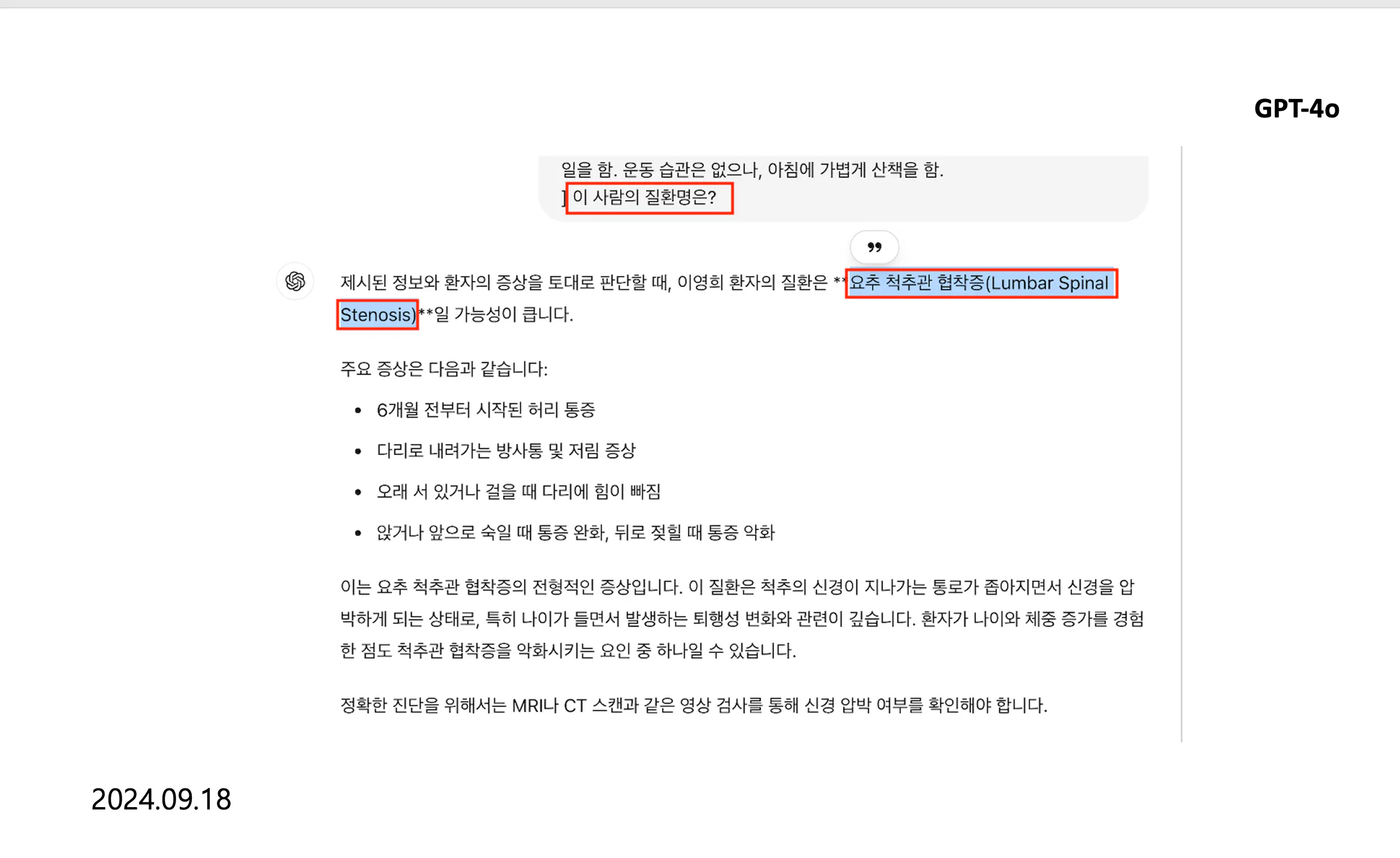 1. ChatGPT o1-preview 텍스트 진단(2024.09.18 어플에서)