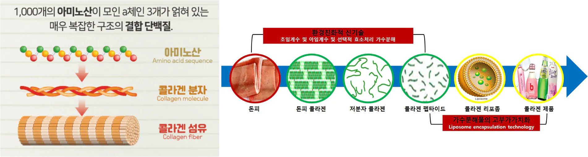 흡수를 위해서는 “저분자 콜라겐” 혹은 “콜라겐 펩타이드” 형태가 필요하다!