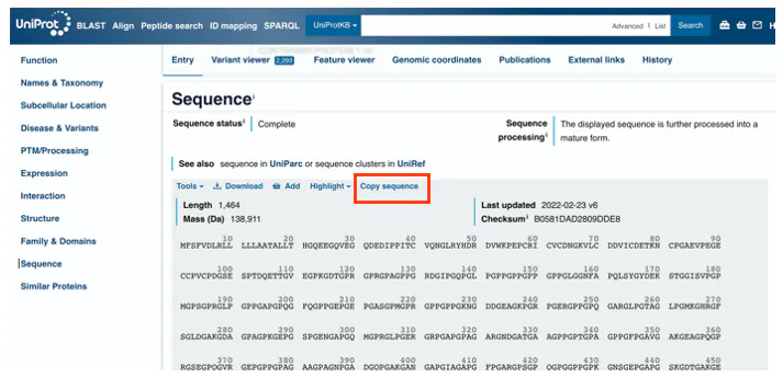 콜라겐 단백질 시퀀스를 모두 복사해서...