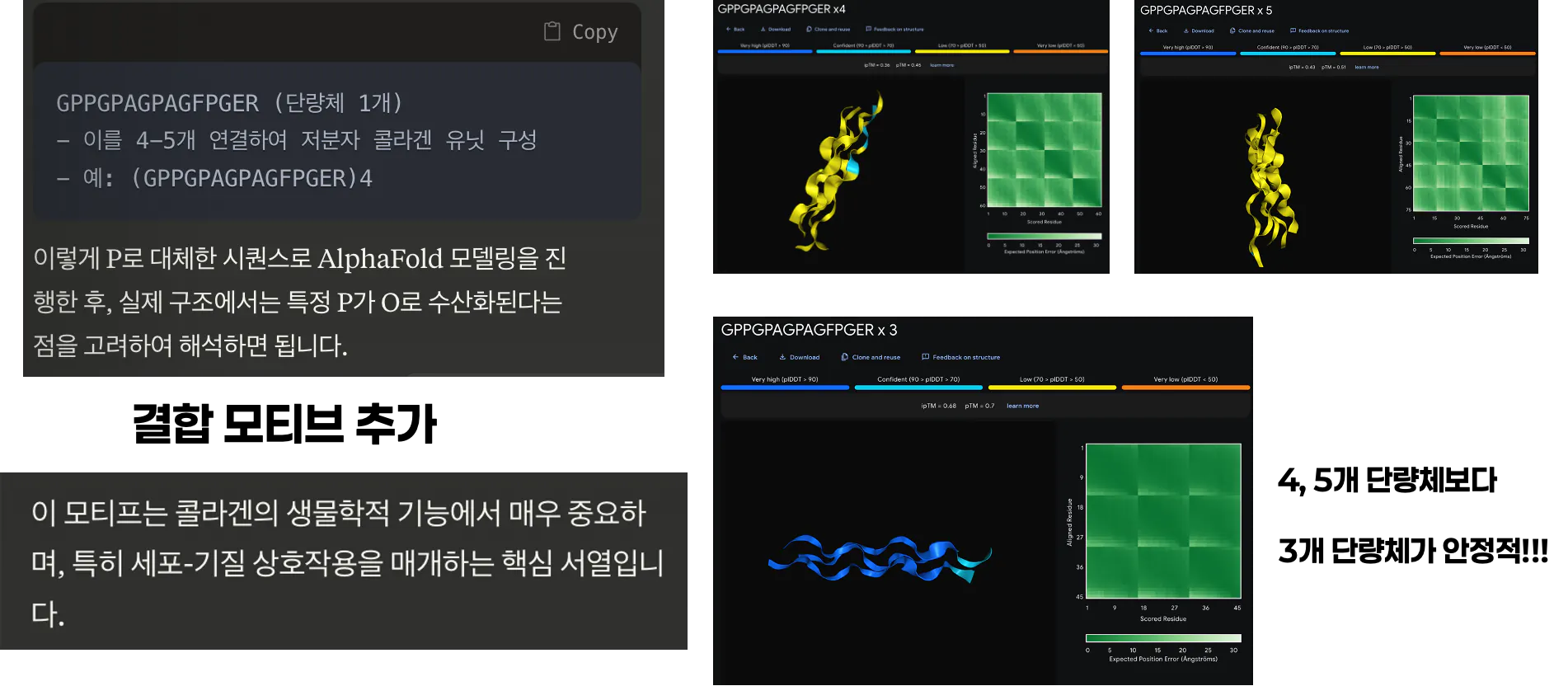 결과적으로 파란색(예측이 매우 정확하게 된다는 의미)의 정확한 저분자 콜라겐 구조를 얻어낼수 있었다.