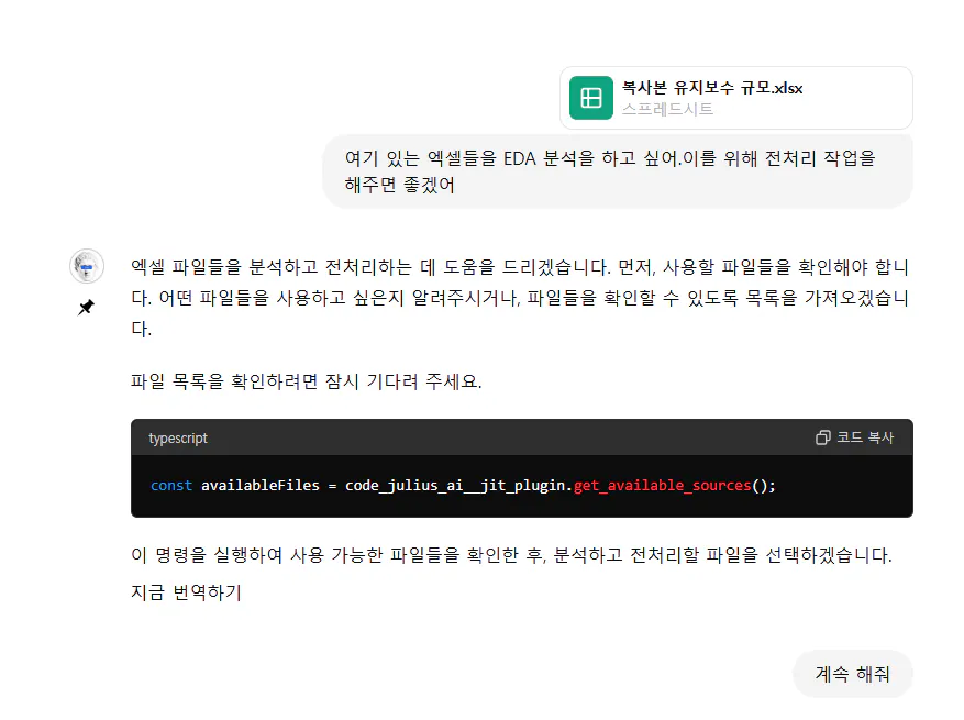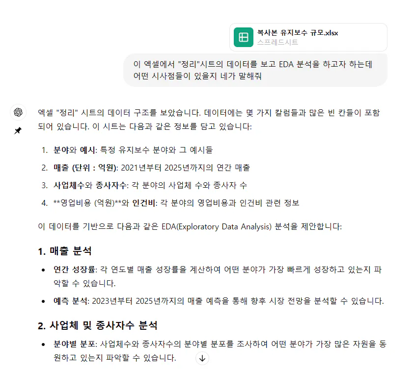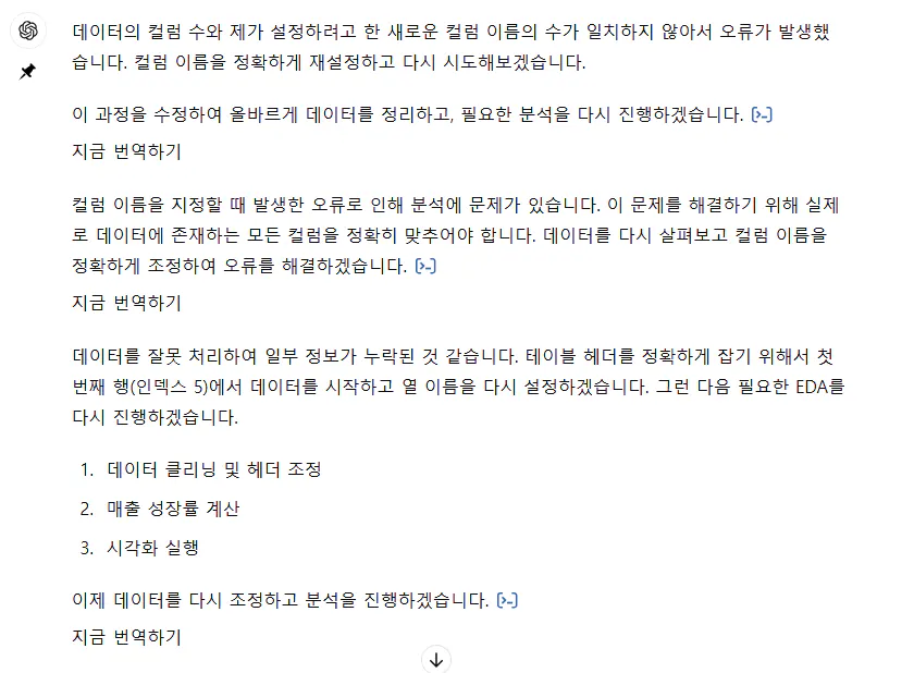 다시 엑셀 데이터를 정리하고……다시 GPT에게 요청