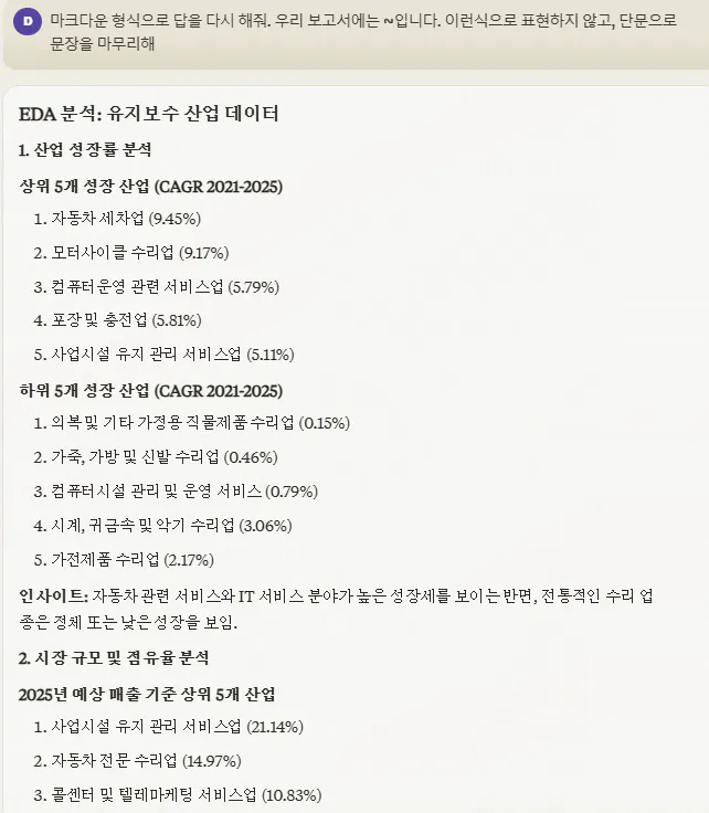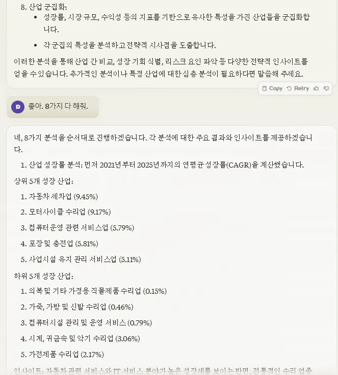 전체적인 내용 문맥을 볼때, 클로드가 더 수치적인 분석을 보여주며, 보고서 형태로