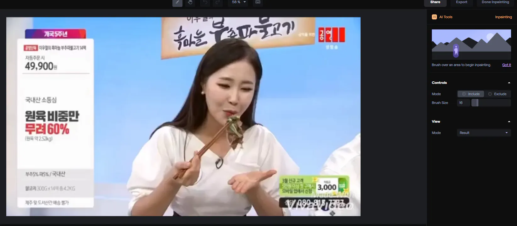 만들어 진 영상을 다시 본 영상에 넣기 위해 Runway Gen2 인페인팅기능을 활용하여 기존 영상에서 본 주인공을 지워줍니다.