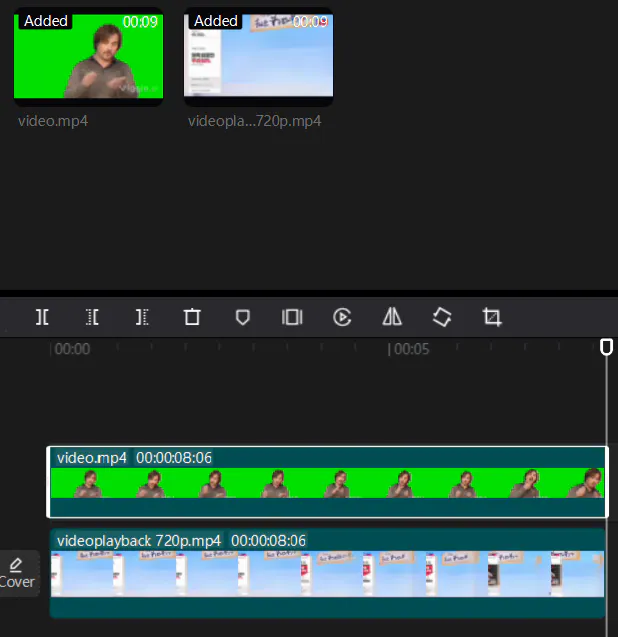 그리고 캡컷을 통해 인물이 지워진 영상+크로마키 배경의 인물영상을 합성합니다