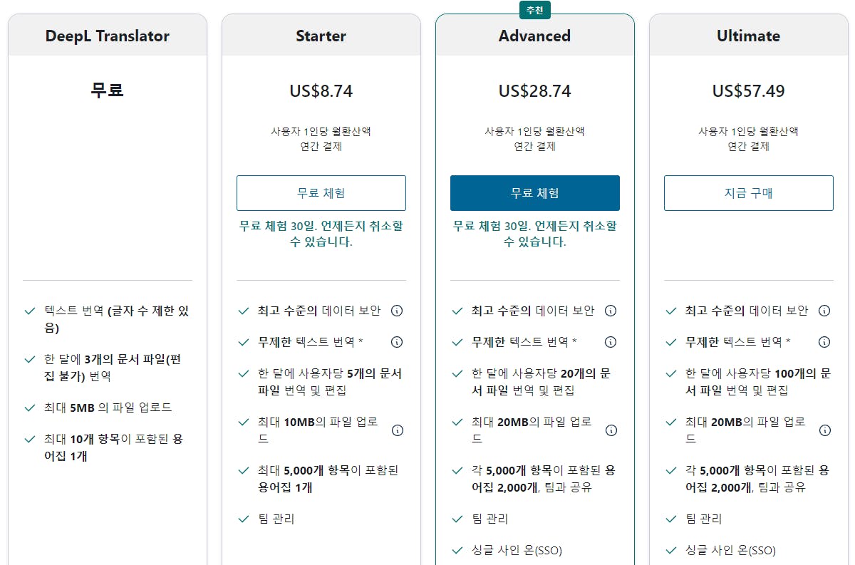 일전에 춘배님께서 소개해주신 DeepL 이라는 번역 앱이 있습니다.DeepL | 현존 최고 품질의 번역기 | GPTers 그룹드디어 한국에서도 결제가 가능하네요결제 플랜입니다(연간 결제 기준입니다. 16% 할인)