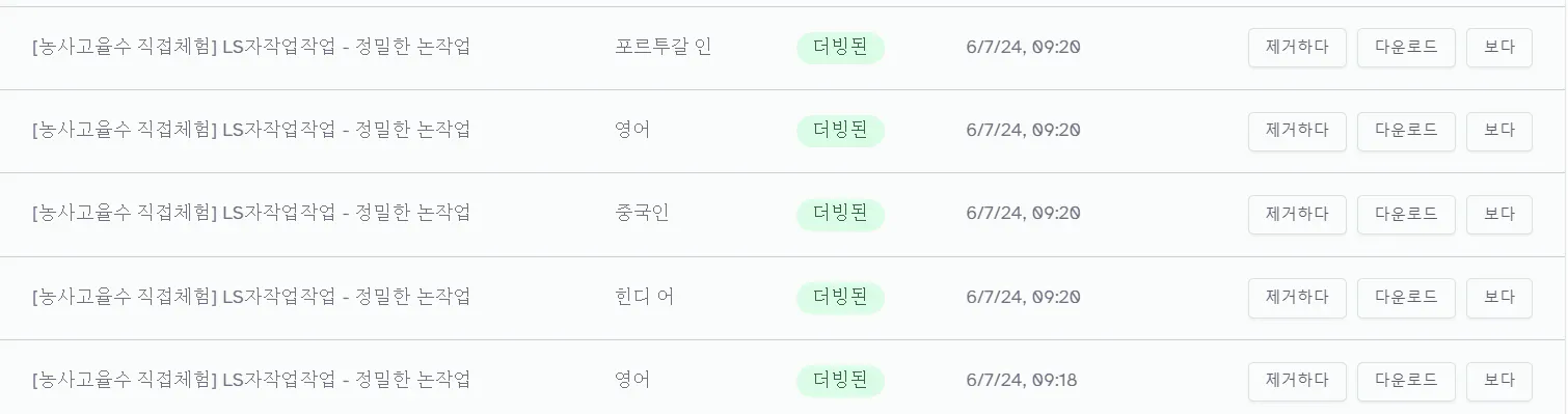 1분도 안되는 시간에 해당 언어 적용된 영상을 만들고 다운로드 받을 수 있게 해줍니다.