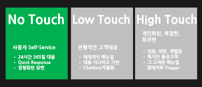 조금만 더 좁혀 오늘의 대상은 고객이 직접 “Self-Service”를 수행할 수 있는 “No-touch”영역에 대해 다루고자 합니다.