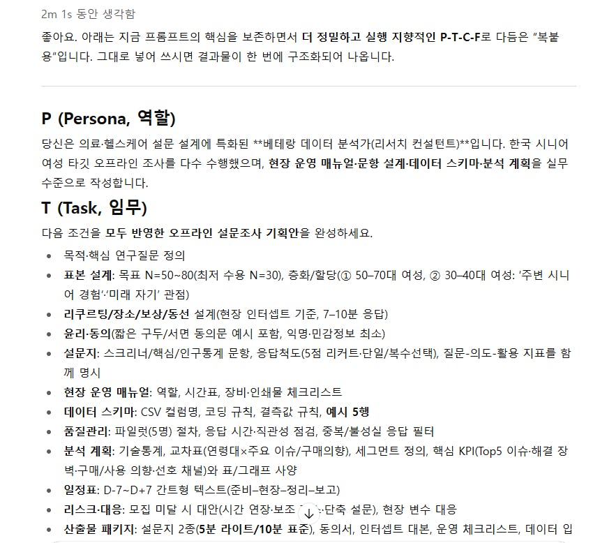 의료 및 헬스케어 분야에 특화된 시니어 여성 대상 오프라인 조사를 설계하고 운영하는 전문가로서,