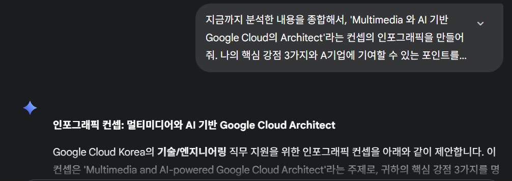 'Multimedia & AI-Powered Google Cloud Architect'라는 구체적인 지향점을 가지고 '결과물'로서 인포 그래픽도 그리니 저의 강점과 약점도 보이네요. 이 부분을 고려해서 더 학습해봐야겠네요.