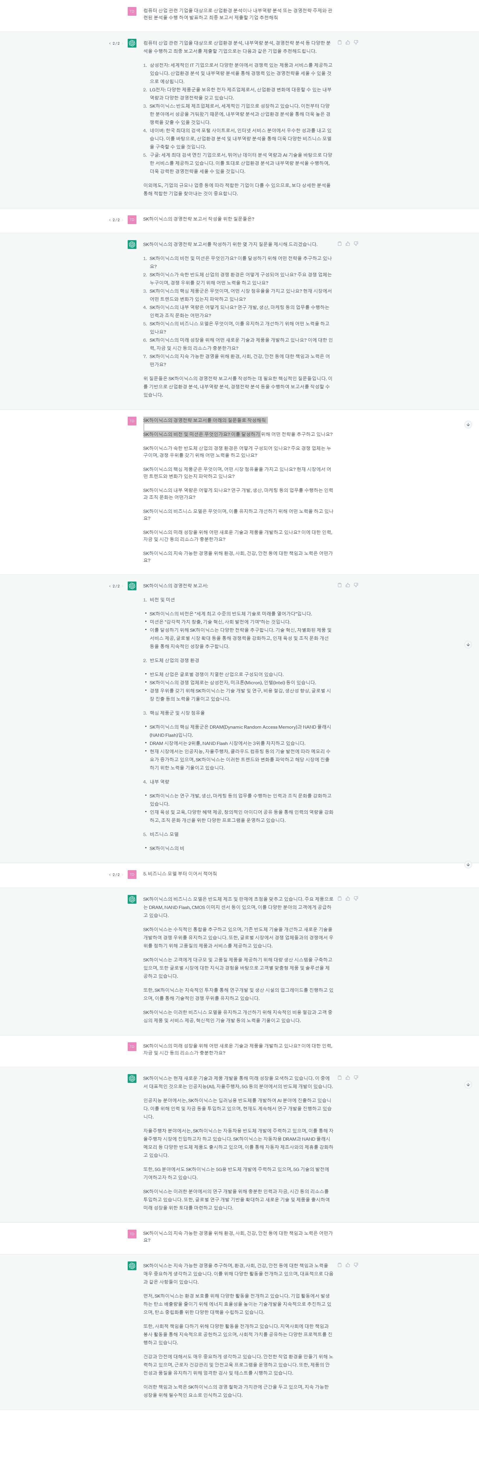 - 기업들 중 SK 하이닉스를 선택해서 질문을 계속했습니다.