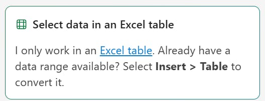그래서 엑셀 장표에서 표형식이 아닌 셀을 선택하면 코파일럿에 계속 이렇게 뜹니다.