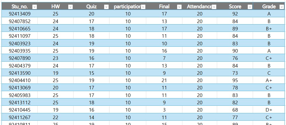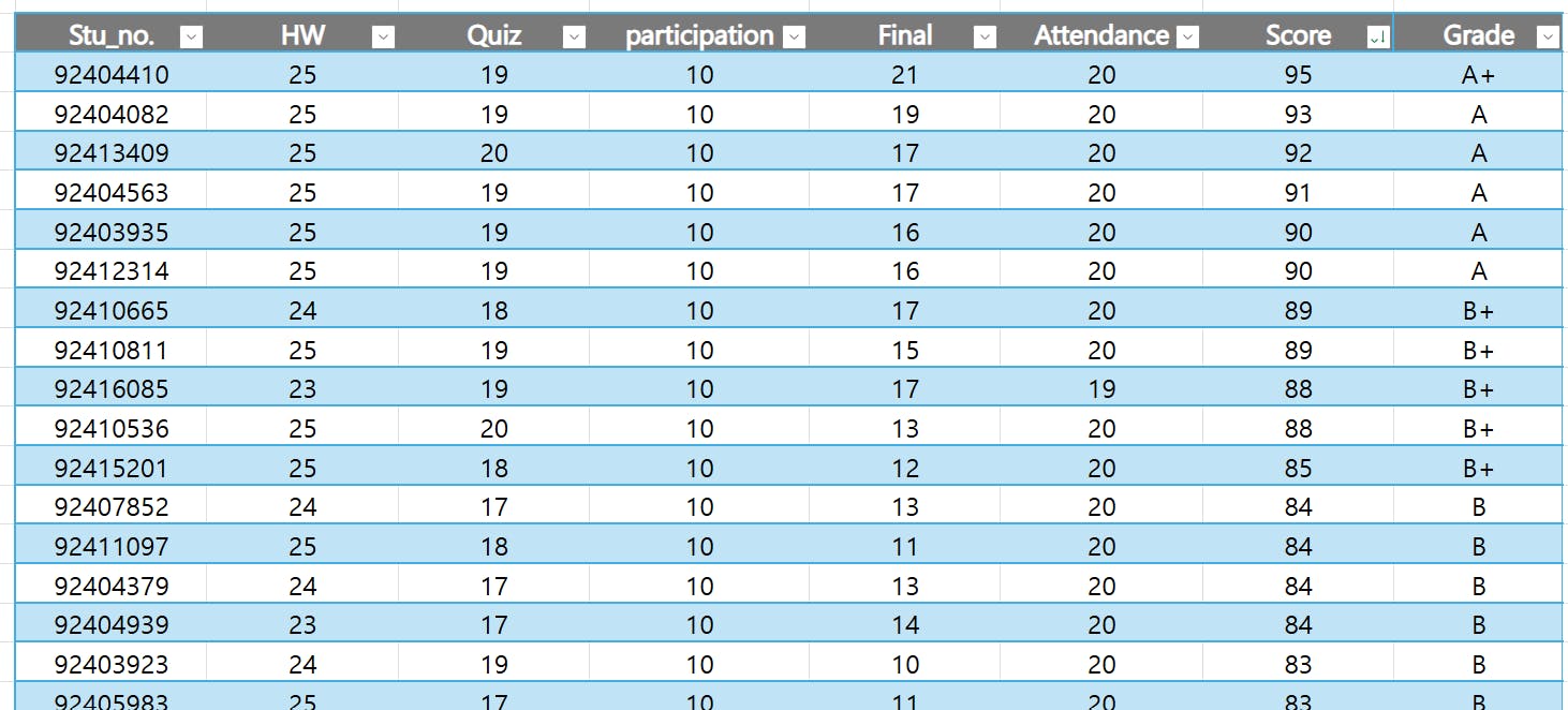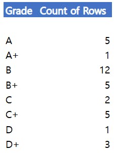 이제 총점이 나왔으니 등급을 줘야겠죠. A+~F까지…